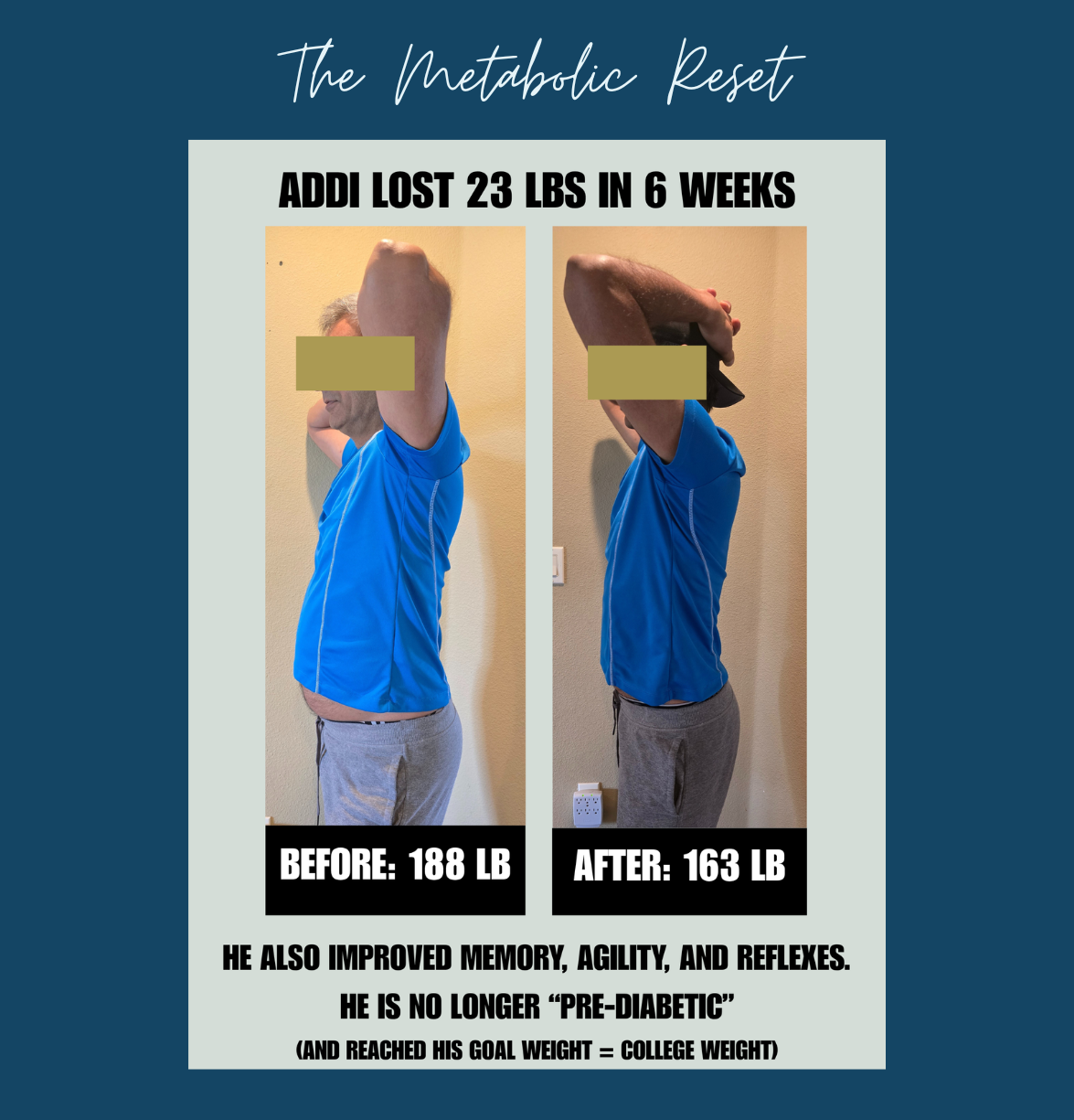 "What jumped out to me about this program was it had all the components that I knew I really needed to support me on my journey to take back control that I had embarrassingly lost. It was much more than a diet program; it was a total metabolic reset and health optimization program."